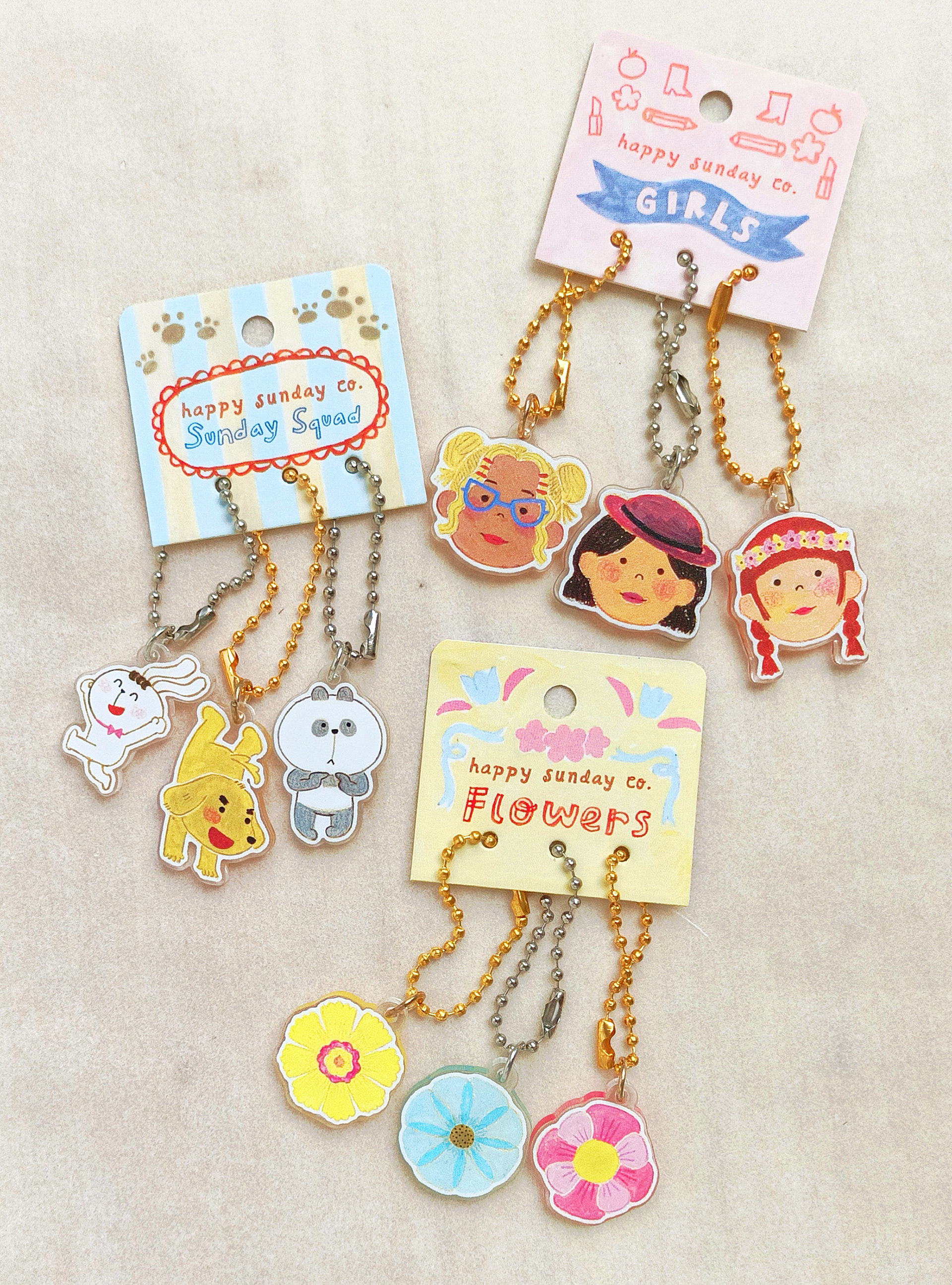 Each piece begins as a hand-drawn illustration on paper, carefully scanned and printed on acrylic.