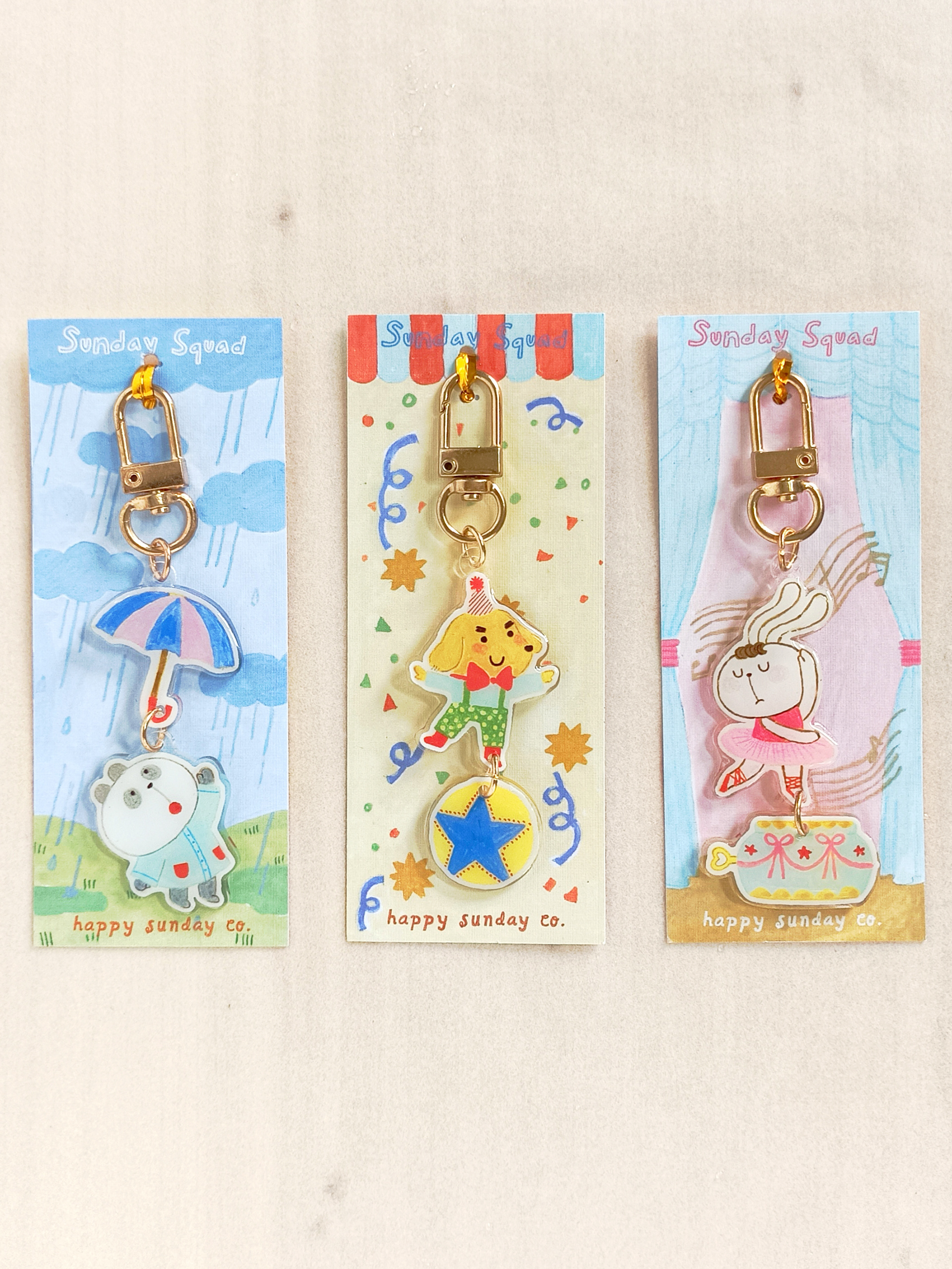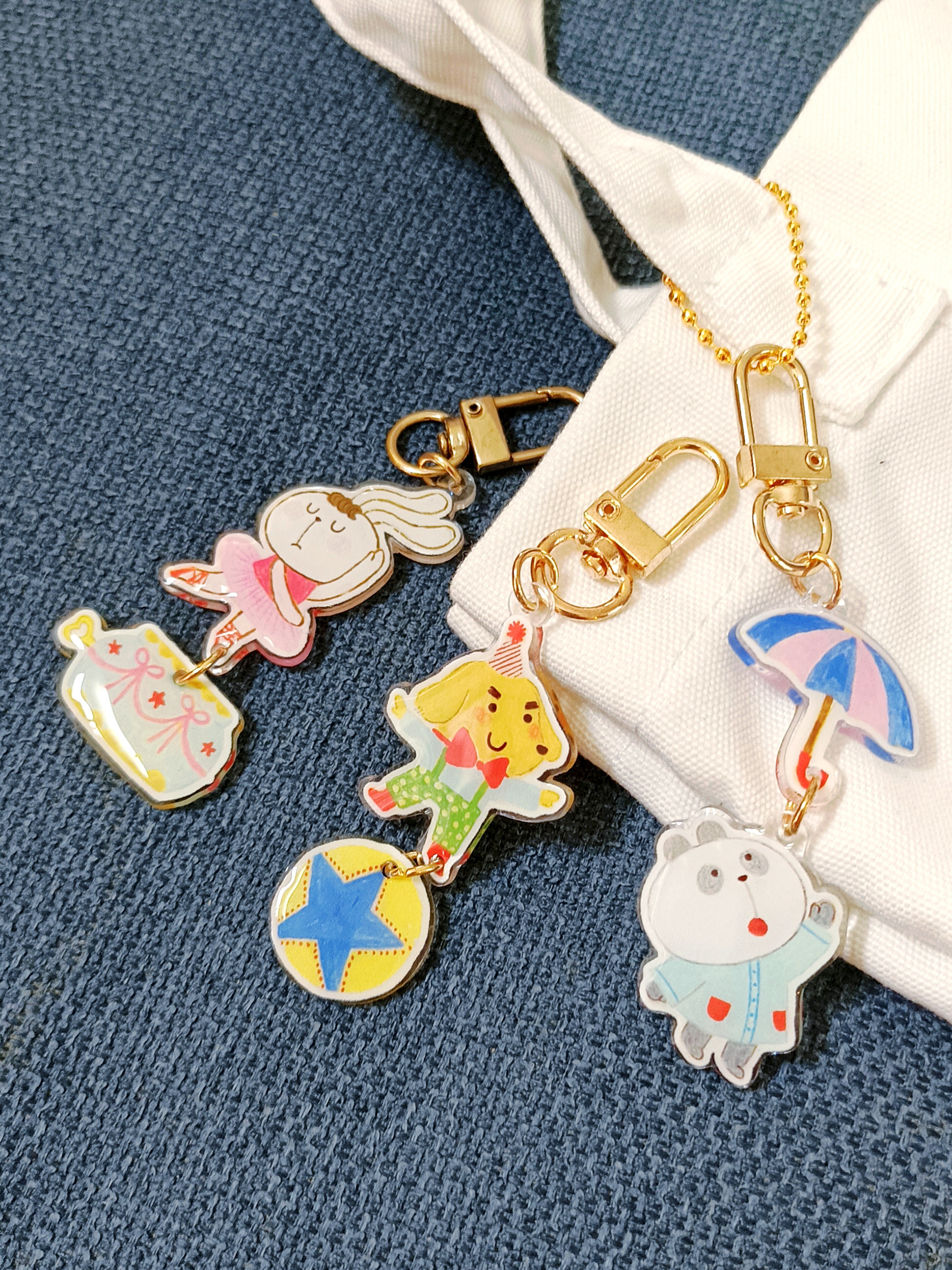 Each piece begins as a hand-drawn illustration on paper, carefully scanned and printed on acrylic, and coated with epoxy by us.
